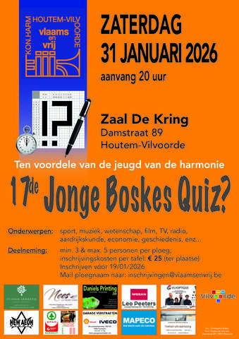 Op zaterdag 31 januari organiseren onze Jonge Boskes hun 17de “Jonge Boskes Quiz”.