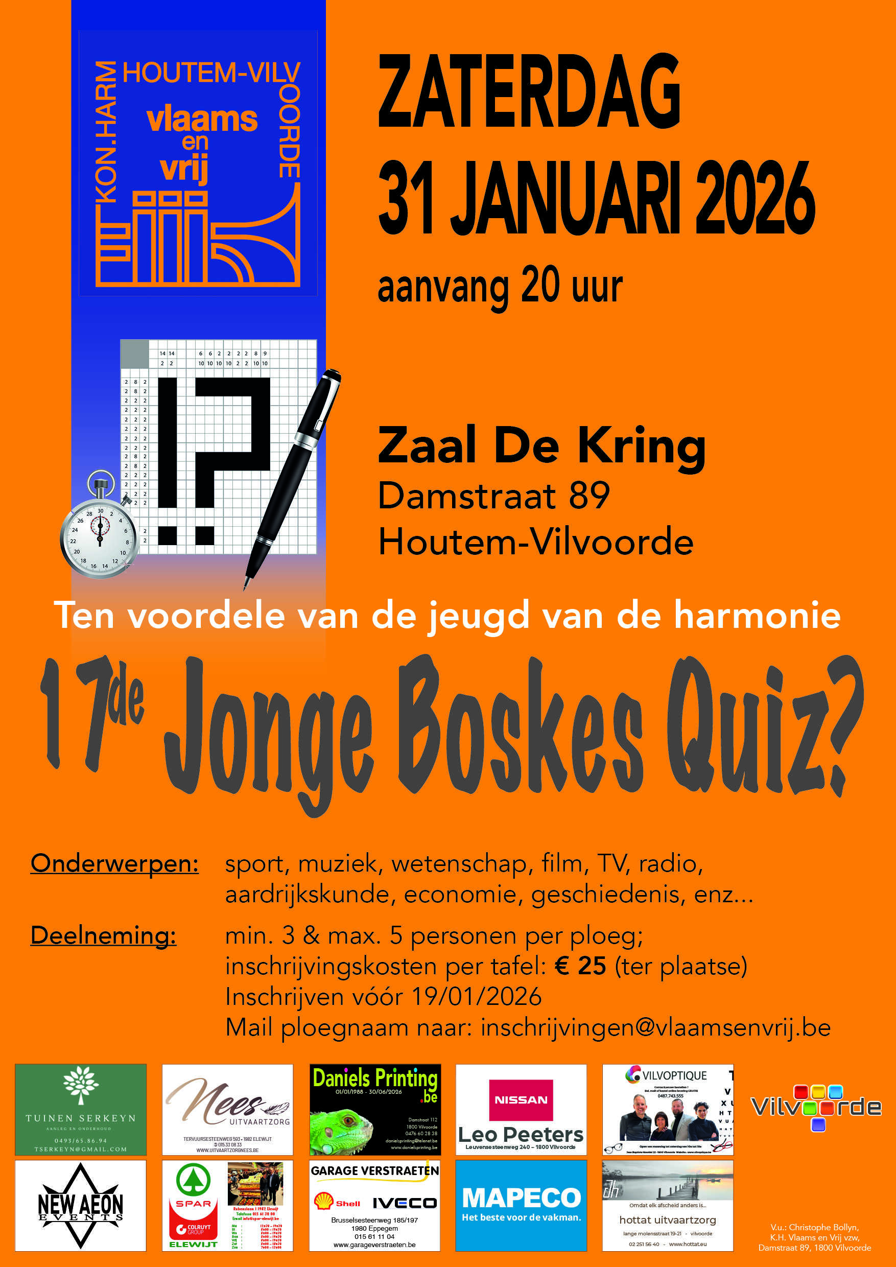 Op zaterdag 31 januari organiseren onze Jonge Boskes hun 17de “Jonge Boskes Quiz”.