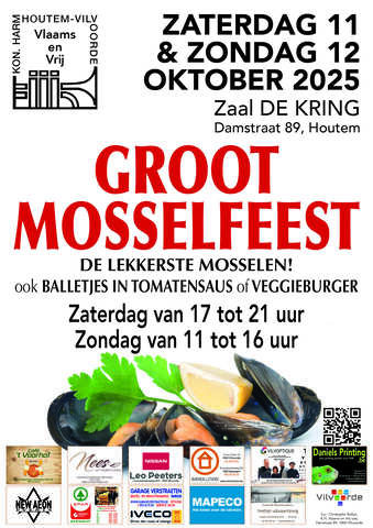 Wij nodigen u van harte uit op het Mosselweekend van onze harmonie. Dat weekend kan u de lekkerste mosselen bij ons verkrijgen (en dit is niet gelogen)! Voor diegene die niet verzot is op mosselen hebben we overheerlijke balletjes in tomatensaus in de aanbieding. Voor wie eens iets anders wil dan een schelpdier in een pot of een balletje met saus, hebben we ook nog een veggieburger.